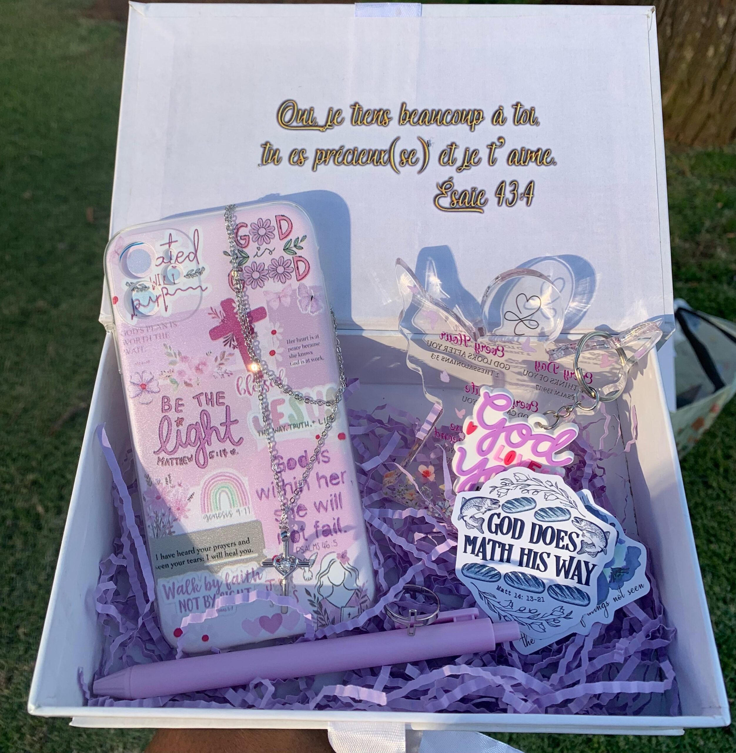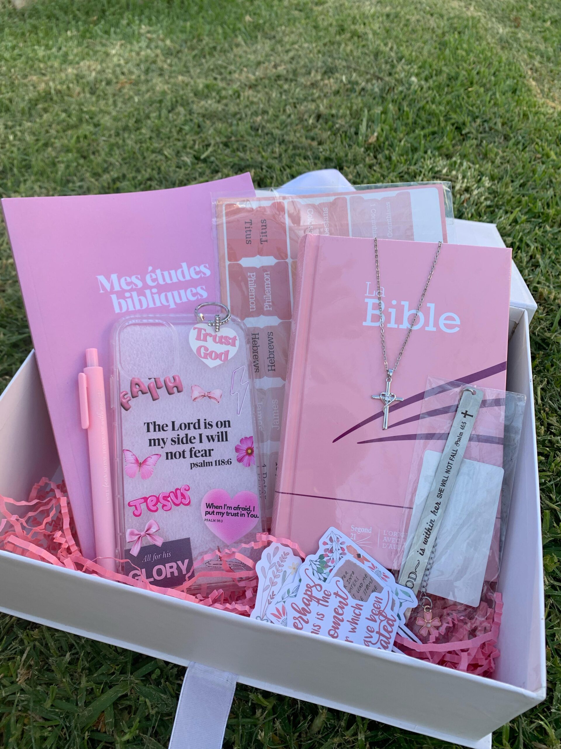 Votre Foi est personnelle, votre Faith Box doit l’être aussi ! ✨ Avec Heavenly Glow, composez une box sur-mesure avec des articles qui vous inspirent : Bibles, marque-pages, stylos et bien plus encore. Que ce soit pour vous ou pour offrir, chaque box est une occasion de nourrir votre Foi au quotidien et de garder près de vous des objets qui vous rappellent l’essentiel.
